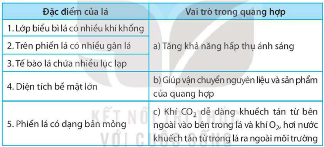 Ghép các đặc điểm của lá phù hợp với vai trò trong quang hợp.