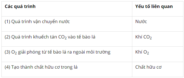 2 – Đúng. Nước là nguyên liệu của quang hợp, được rễ cây hút từ môi trường bên ngoài vào và vận chuyển qua thân lên lá.