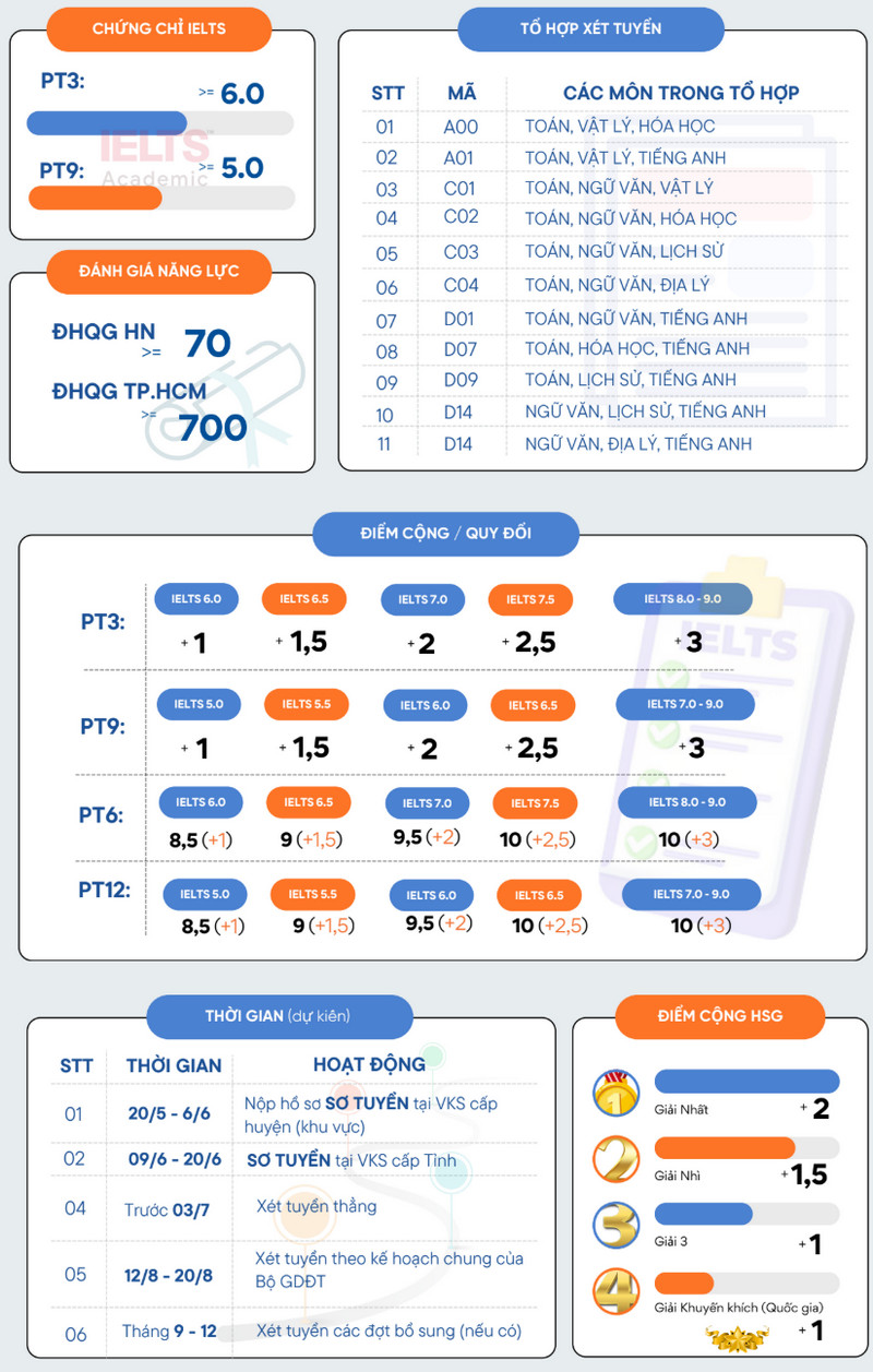 Phương thức 9: Xét tuyển kết quả học tập THPT và điểm chứng chỉ tiếng Anh IELTS học thuật (lelfs Academic): từ 5.0.