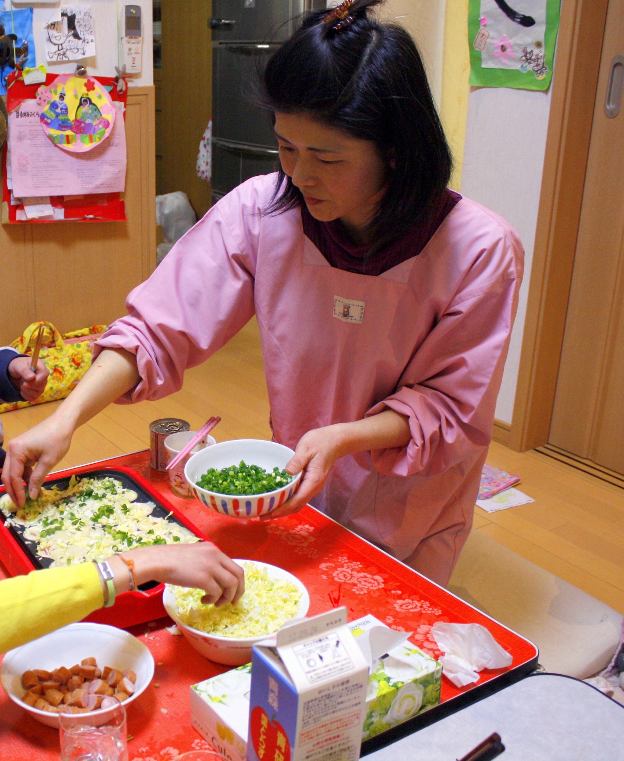 We usually eat around 7pm. A favorite dinner of my husband is okonomiyake (Japanese pizza).