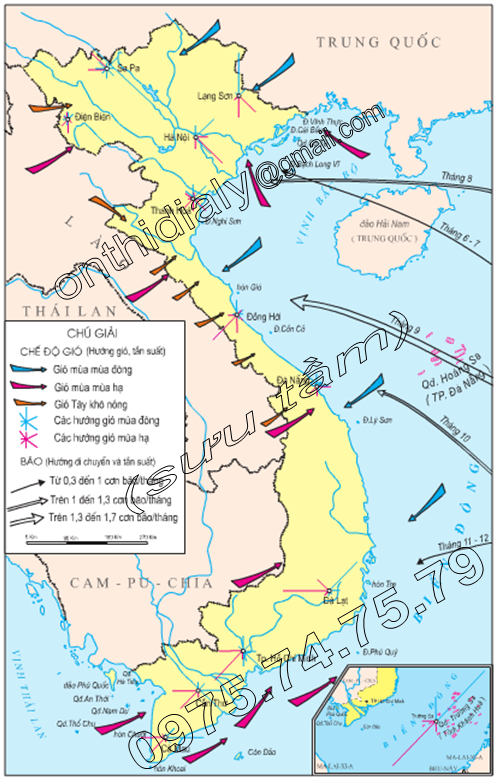 C. Hướng gió, dòng biển. D. Hướng chạy các địa hình.