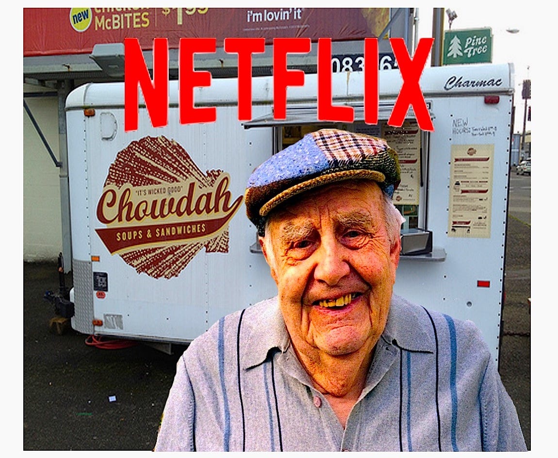 This documentary follows the everyday life of a septuagenarian named Pat Fitzpatrick who sells clam chowder out of a cart in Worcester, Massachusetts. The Boston accents in this film are almost as thick as Pat’s chowder, to the point where the entire thing is subtitled. It’s like if you took all the cop drama out of Martin Scorcese’s The Departed and just made it about a foul-mouthed old man.
