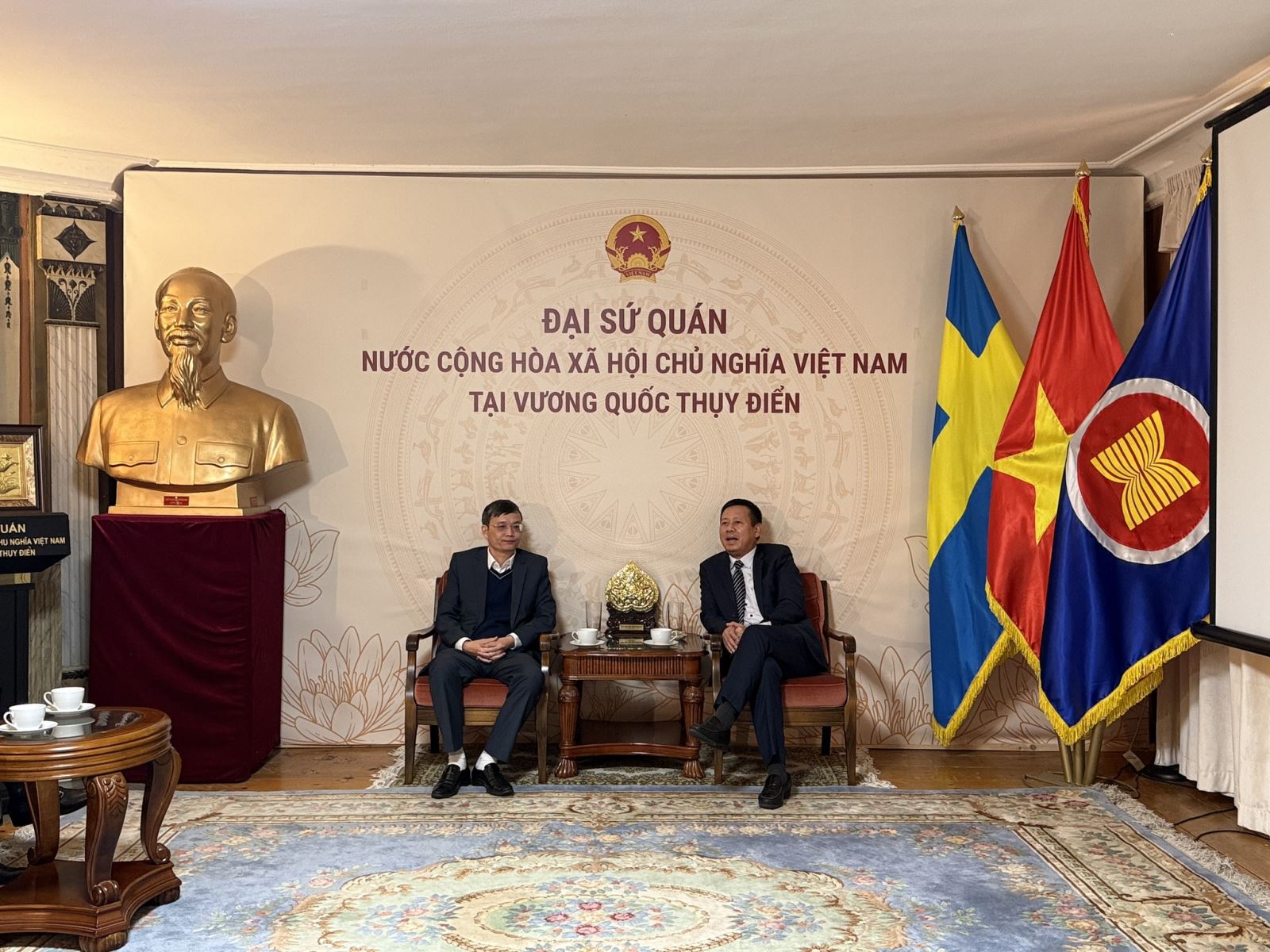 Tại buổi tiếp, Đại sứ Trần Văn Tuấn đánh giá cao chuyến công tác của Trường Đại học Luật Hà Nội tới Thụy Điển, đặc biệt trong bối cảnh Việt Nam và Thụy Điển đang ngày càng tăng cường hợp tác trong lĩnh vực giáo dục, nghiên cứu và đào tạo nguồn nhân lực chất lượng cao. Đại sứ khẳng định, Đại sứ quán luôn sẵn sàng đóng vai trò cầu nối, hỗ trợ các trường đại học Việt Nam trong việc thiết lập và phát triển quan hệ hợp tác hiệu quả với các đối tác Thụy Điển, góp phần nâng cao vị thế của giáo dục đại học Việt Nam trên trường quốc tế.