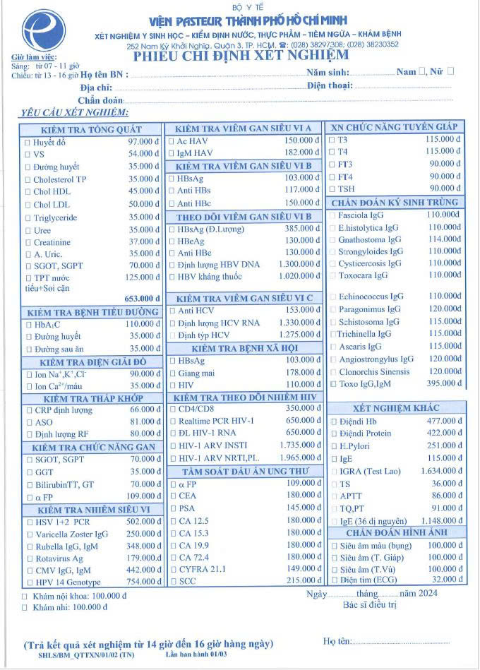 Quí khách có nhu cầu trả kết quả qua đường bưu điện xin liên hệ nhân viên hướng dẫn (không phải mất thêm một khoảng chi phí nào khác).