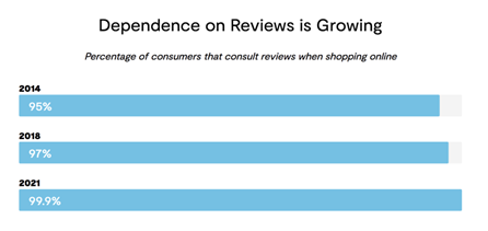 Để có thể so sánh giữa các sản phẩm/dịch vụ giữa nhiều sự lựa chọn từ nhiều thương hiệu, khách hàng cần có thêm nhiều thông tin khác khi tìm kiếm ở Website để phân tích và củng cố niềm tin trước khi đưa ra quyết định. Bên cạnh đó, hành vi người tiêu dùng trên Internet còn có sự ảnh hưởng bởi những phản hồi, đánh giá từ những khách hàng cũ cũng là một phần thông tin rất thu hút khách hàng mới, vì đó là sự trải nghiệm giúp họ dễ dàng đưa ra sự so sánh hơn. Những năm trước, giá là yếu tố được cân nhắc đầu tiên khi ra quyết định mua hàng. Nhưng hiện tại, review là yếu tố có ảnh hưởng đầu tiên và nhiều nhất đến hành vi mua hàng của khách, vượt qua cả những yếu tố quan trọng khác như free shipping, brand, giá, ý kiến từ gia đình và bạn bè. Ngày nay, 99% người tiêu dùng sẽ đọc review trước khi mua sắm online, trong đó có 61% luôn luôn đọc review, và hơn 1/3 đọc review thường xuyên.