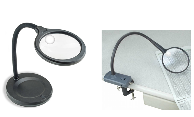 Kính lúp để bàn – kẹp bàn: Kính có thiết kế tích hợp đèn neon, ánh sáng dịu nhẹ không gây tổn thương cho da cũng như các cảm giác khó chịu cho mắt, được cố định bằng ê tô hoặc bằng kẹp vít.