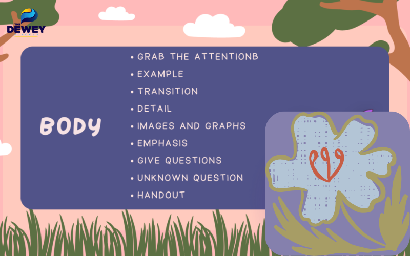 - Phần thân bài (Body): Triển khai nội dung theo từng luận điểm, đưa dẫn chứng, ví dụ thực tế hoặc số liệu để tăng tính thuyết phục.