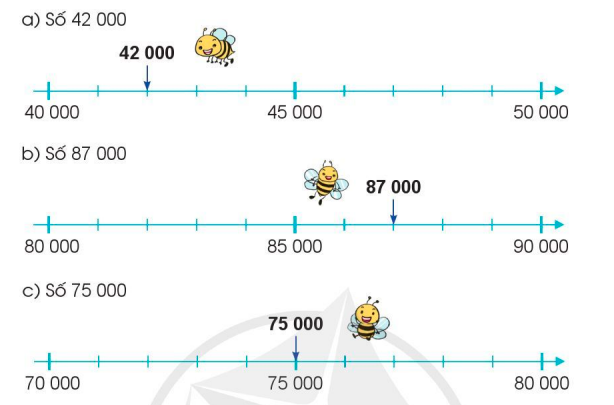 c) Ta thấy: Số 75 000 cách đều hai số 70 000 và 80 000.