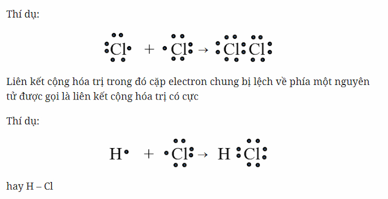 Liên kết cộng hóa trị không cực là liên kết được tạo nên giữa hai nguyên tử bằng những cặp electron chung.