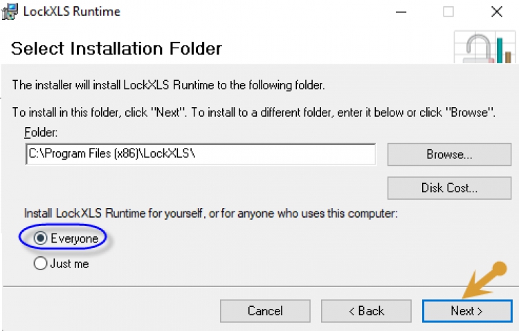 – Tiếp tục tích chọn Everyone (Nếu bản LockXLS 64bit thì theo mặc định) > Chọn Next như hình (H.7)