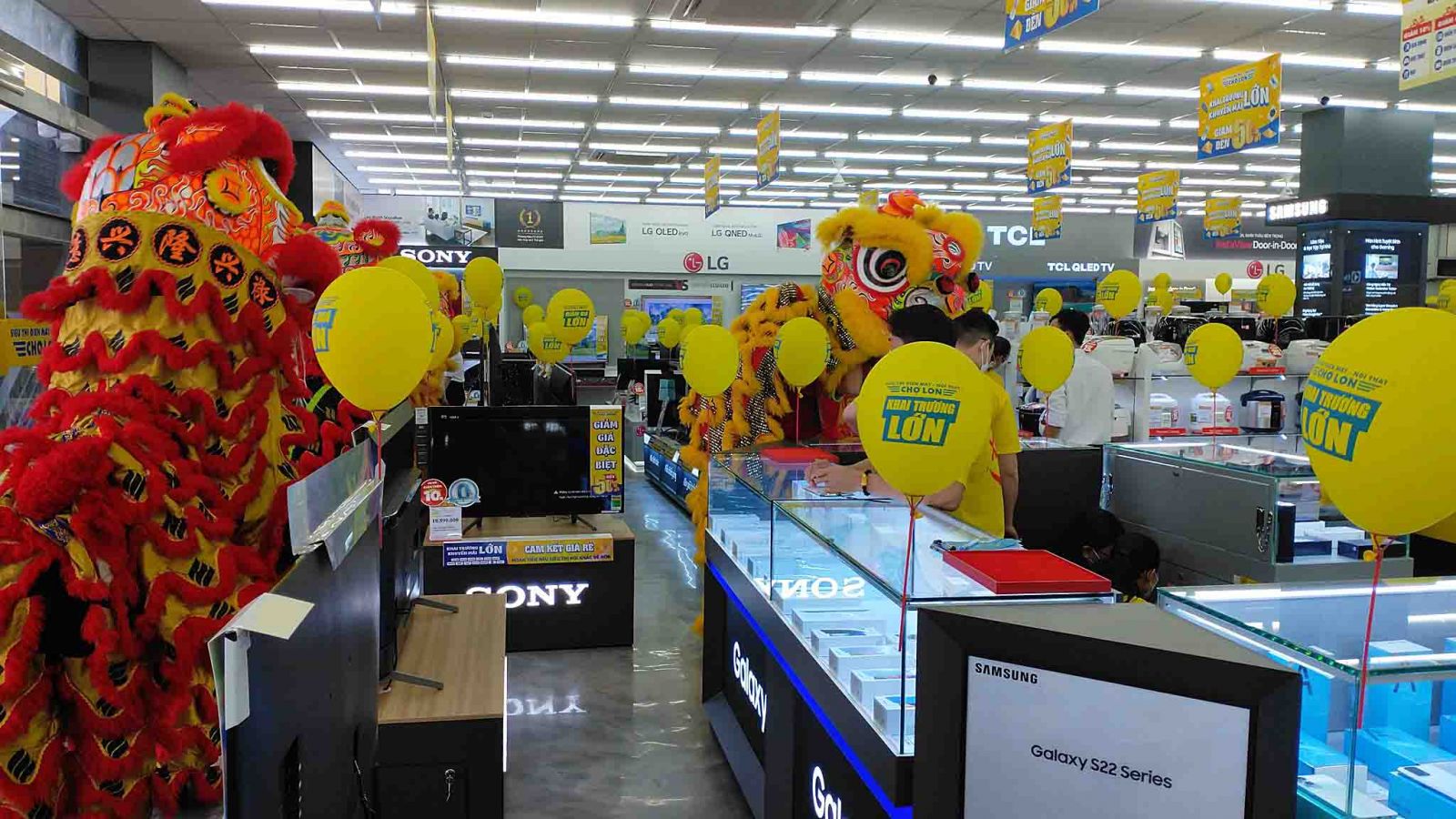 Khu vực quầy kệ trưng bày các sản phẩm điện tử, điện lạnh