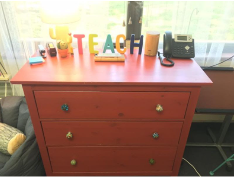 4) Do you need a bookshelf or set of drawers to store your teacher desk items? Before you go to buy something new, ask around your school. Try sending out a staff-wide email explaining what you are looking for. Other teachers might have furniture at home or school they would like to get rid of. Offer to come and pick everything up, people are much more willing to give if they don’t have to take time out of their day. You can also ask parents. Send an email out asking parents if they or anyone they know would want to donate a piece of furniture to your classroom. I have also asked parents to keep their eyes out for whatever item I’m searching for. Then they’ll email me if they see something on Facebook Marketplace or in a thrift store that would work. People are usually happy to get rid of old items, and who doesn’t love donating to a school? In some instances their donation could be considered a charitable donation and used as a write off.