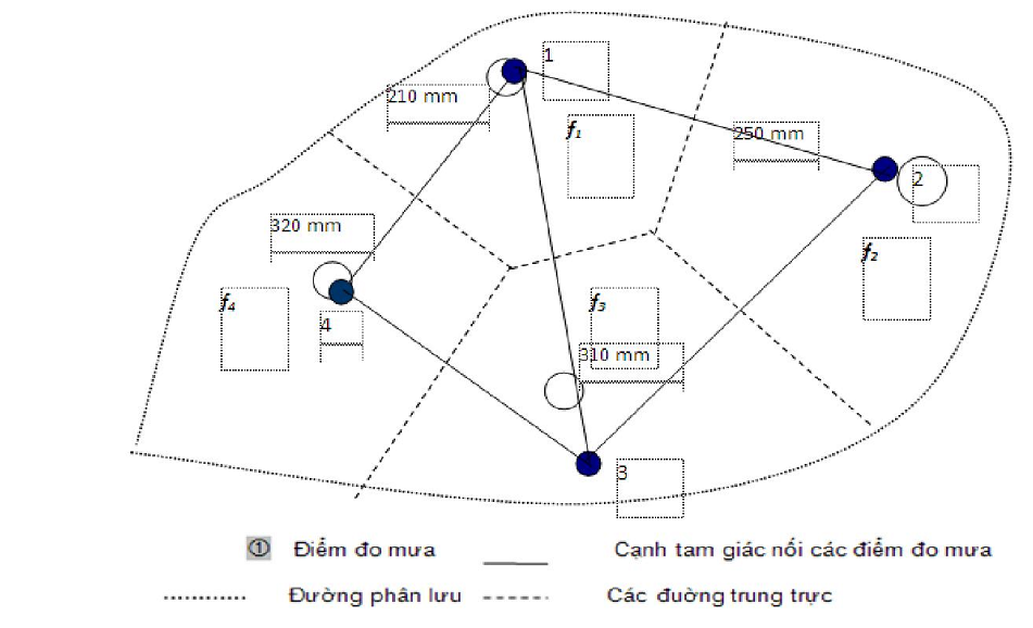 Hình 2. Sơ đồ đa giác Thiessen trong lưu vực sông/vùng A