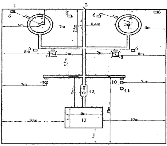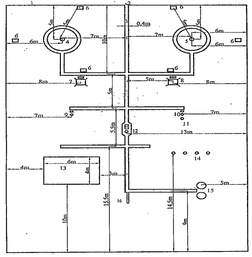 Hình 6. Sơ đồ bố trí trong vườn quan trắc khí tượng loại 16m x 16m