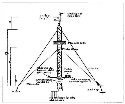 – Tháp (cột) để lắp thiết bị quan trắc phải bảo đảm cố định, chắc chắn, thẳng đứng, chịu được với mọi cấp gió; có chiều cao từ 10m đến 12m.