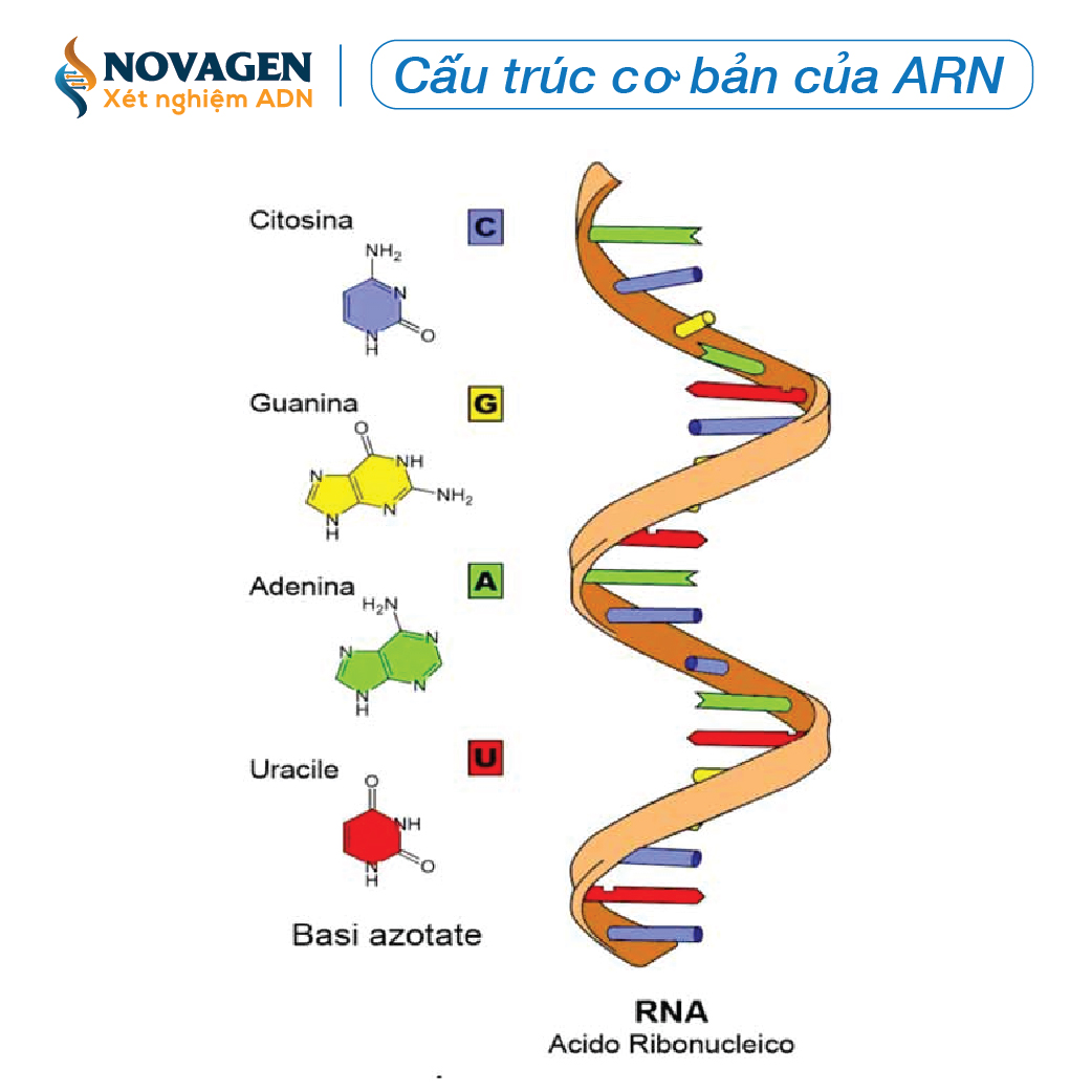 Axit ribonucleic có tất cả các thành phần giống với ADN, chỉ có 2 điểm khác biệt chính bên trong nó. ARN có cùng các bazơ nitơ gọi là adenine, Guanine, Cytosine giống như DNA ngoại trừ Thymine được thay thế bằng uracil. Adenine và uracil được coi là khối xây dựng chính của RNA và cả hai đều tạo thành cặp bazơ với sự trợ giúp của 2 liên kết hydro.