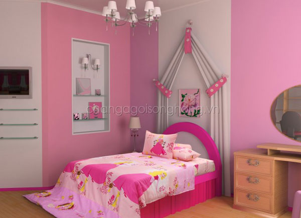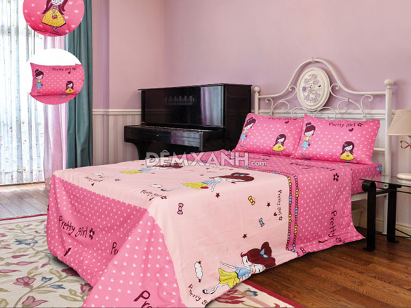 Khác với bé trai, các bé gái thường yêu thích thiết kế nhẹ nhàng, lãng mạn. Do đó, loại chăn ga gối Sông Hồng này thường mang sắc sáng, nữ tính như hồng, xanh lục nhạt, vàng nhạt, màu pastel,… Các họa tiết phổ biến hơn cả là mèo Hello Kitty, nhân vật hoạt hình, nhân vật cổ tích, động vật nhỏ, hoa cỏ…