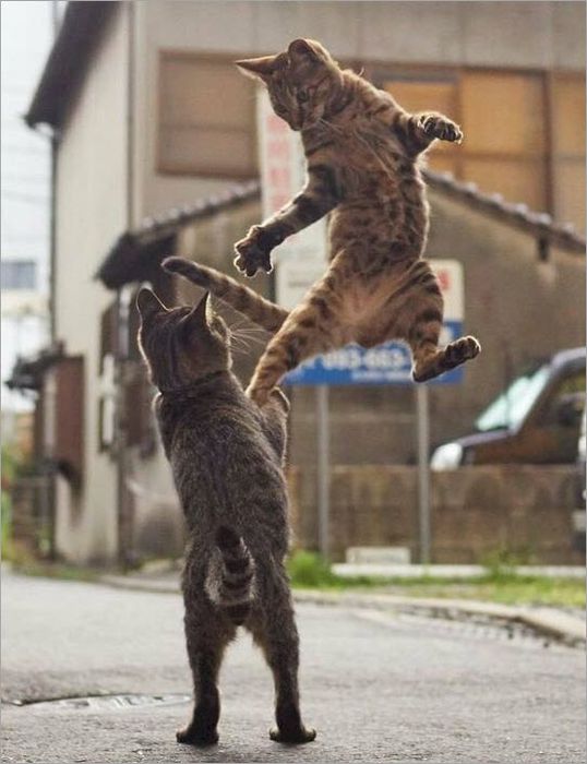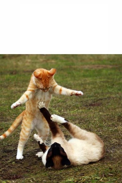 Meme mèo đánh nhau trong không khí vui vẻ và đầy hứng khởi, mang lại những khoảnh khắc đáng nhớ