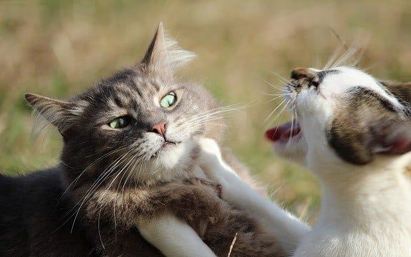Meme mèo đánh nhau trong khung cảnh dễ thương và đầy hấp dẫn, khiến người xem không thể rời mắt