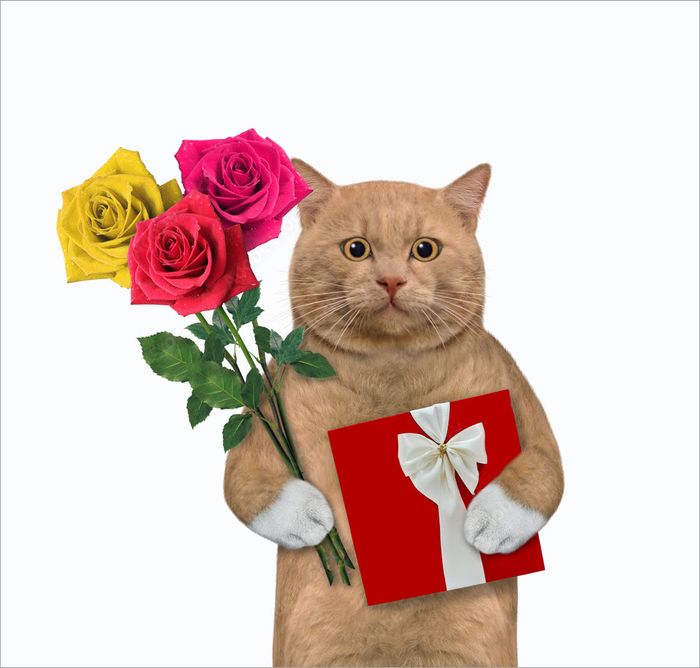 Những hình ảnh meme mèo tặng hoa hồng đầy lãng mạn và ngọt ngào