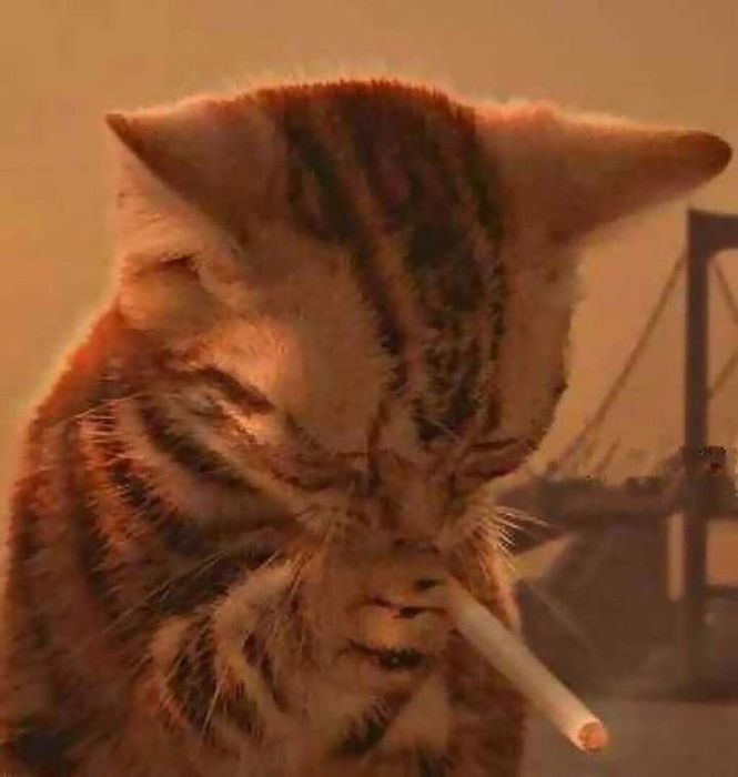 Meme mèo hút thuốc mang nét buồn trầm lắng