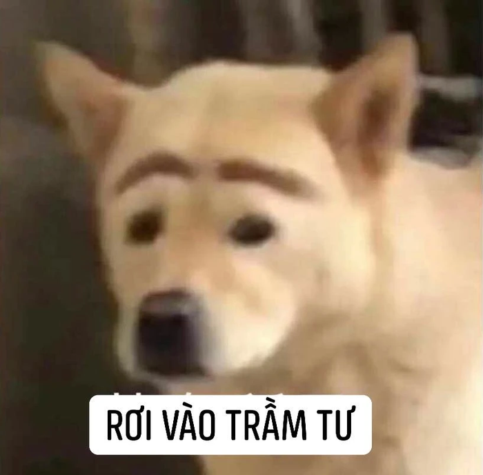 Meme chú chó với nét mặt trầm cảm đầy cảm xúc
