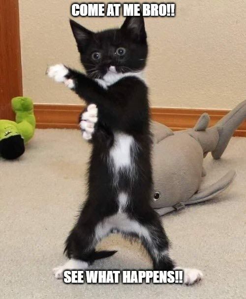 Meme mèo gạ kèo đánh nhau với sự hài hước và thông minh, tạo nên tình huống bất ngờ