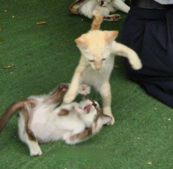 Meme mèo đánh nhau với tình huống hài hước và vui nhộn, tạo nên tiếng cười sảng khoái