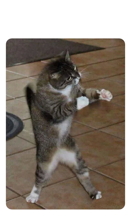 Meme mèo giơ nắm đấm đầy hài hước, tạo nên tình huống đánh nhau vui nhộn và đáng yêu