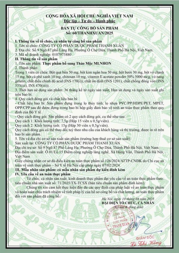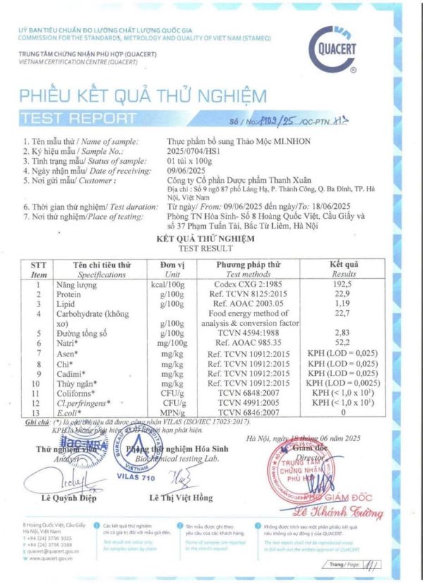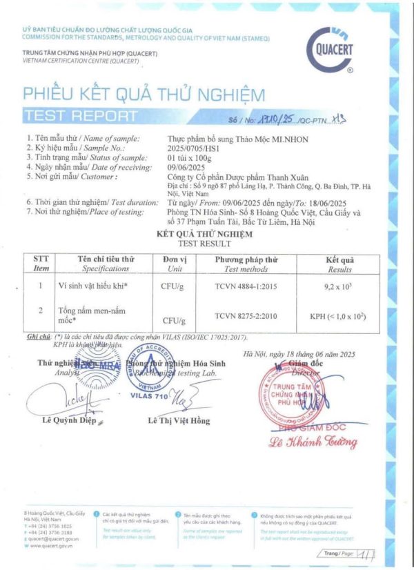 2. Thành phần của Thảo Mộc Mi Nhon (Mẫu Mới Của Tiến Hạnh VIP X2)