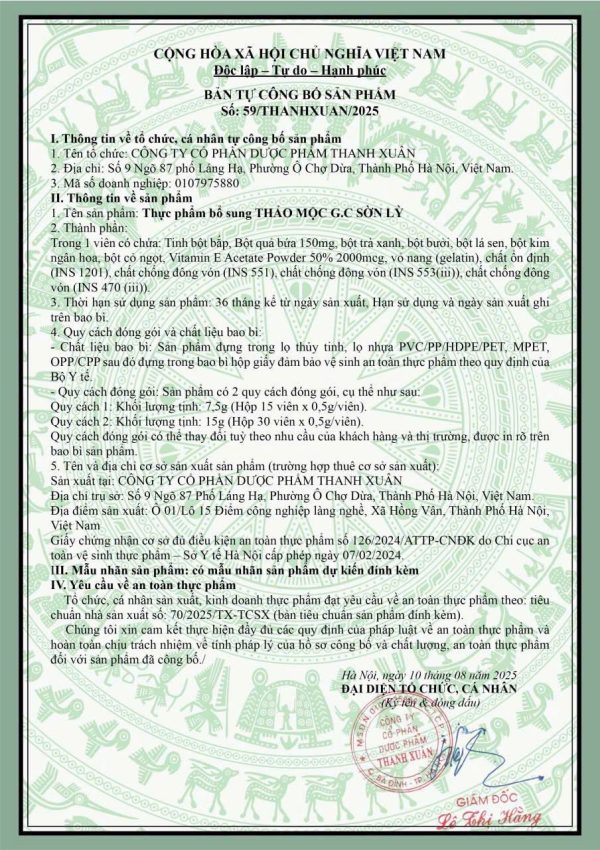 - Xuất xứ: Công ty cổ phần dược phẩm Thanh Xuân.
