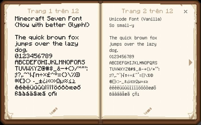 - Minecraft Seven Font (left page) and Unicode Font (right page)