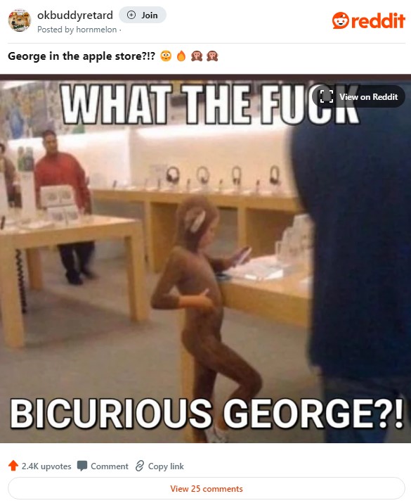 The meme was revived when the little monkey boy was photoshopped out of his Apple Store surroundings. He was inserted into GameStop, spelled “ganestop” in the meme.