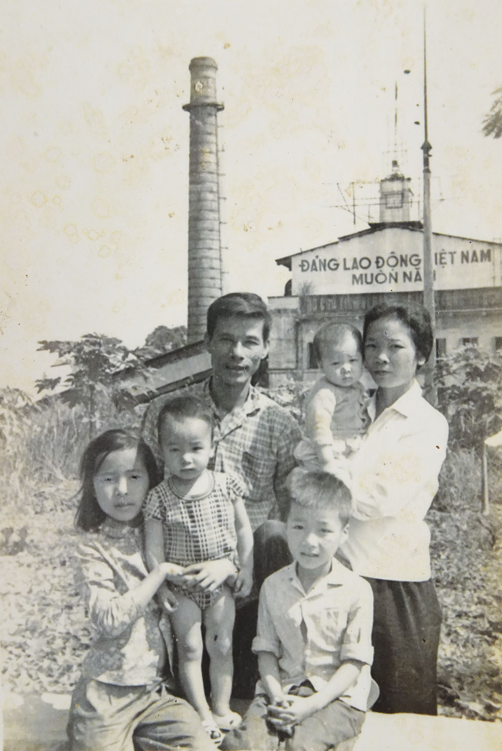 Gia đình ông Nguyễn Văn Kỷ (tác giả bài viết) chụp ảnh lưu niệm trước câu lạc bộ của Nhà máy điện Lào Cai năm 1977. Ảnh tư liệu