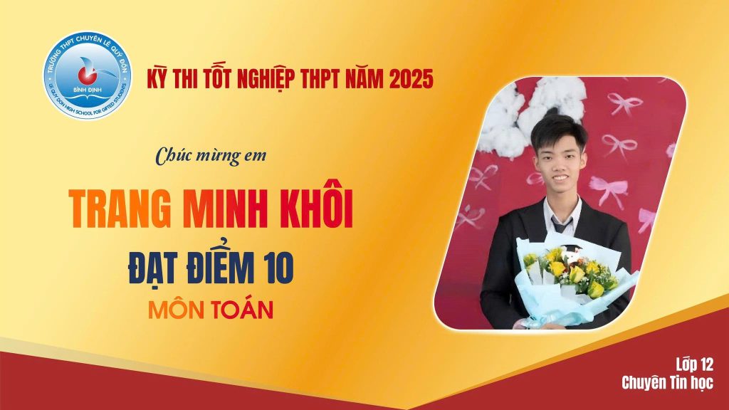 Chiều 16/7, thầy Huỳnh Lê Minh – Hiệu trưởng Trường THPT chuyên Lê Quý Đôn (phường Quy Nhơn, tỉnh Gia Lai) xác nhận, nhà trường có 12 học sinh đạt điểm 10 trong kỳ thi tốt nghiệp THPT năm nay. Các môn có điểm tuyệt đối gồm: Toán, Vật lý, tiếng Anh và Địa lý.