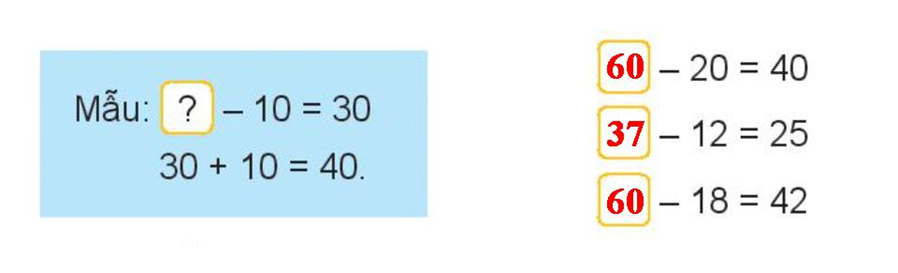 – Muốn tìm số bị trừ chưa biết ta lấy hiệu cộng với số trừ.