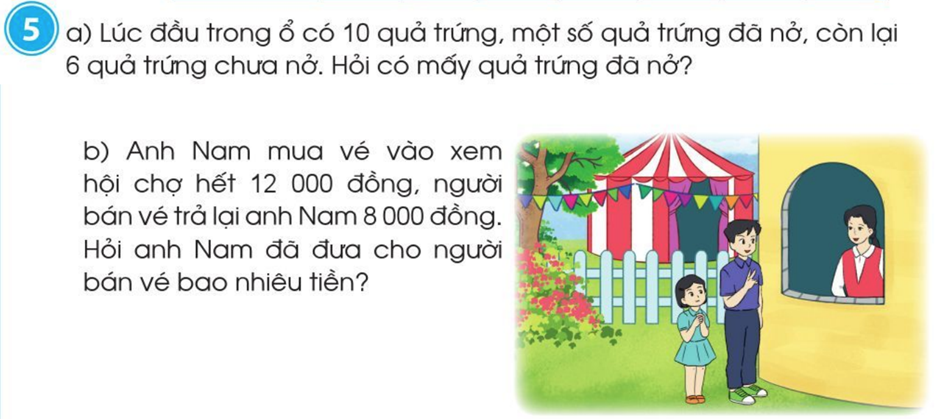 a) Số quả trứng đã nở = Số quả trứng lúc đầu – số quả trứng chưa nở.