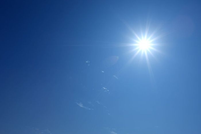 Background bầu trời tuyệt đẹp, kết hợp giữa sắc xanh tinh khiết và ánh sáng mặt trời rực rỡ, mang đến cảm giác tươi mới và tràn đầy năng lượng.