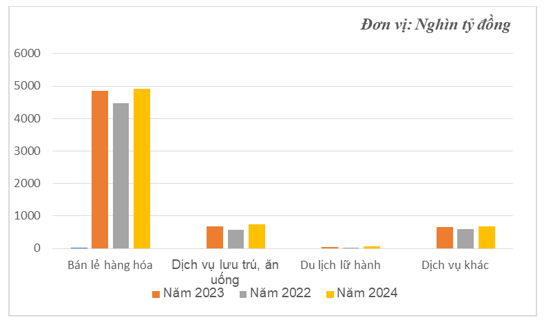 Hình 1: Tổng mức bán lẻ hàng hóa và doanh thu dịch vụ tiêu dùng giai đoạn 2022- 2024