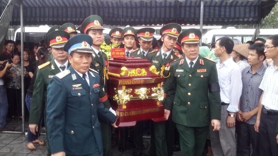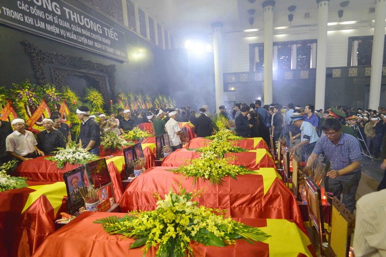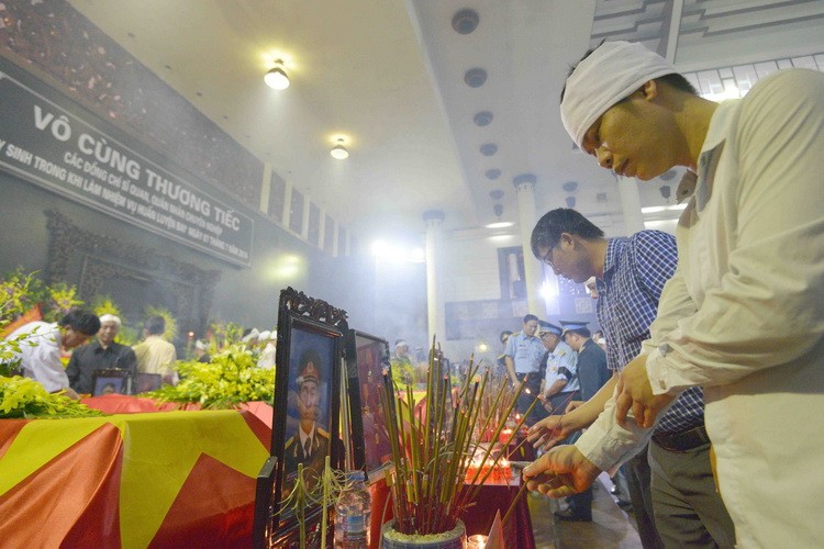 Chủ tịch nước đã quyết định truy tặng Huân chương cho các chiến sĩ tử nạn. Ba cán bộ chiến sĩ được truy tặng Huân chương Chiến công hạng Nhất, gồm Đại tá Hoàng Lại Long (phi công lái chính, Phó tham mưu trưởng Trung đoàn 916), Thiếu tá Lê Thanh Việt (phi công lái phụ kiêm dẫn đường trên không Phi đội 2), Thiếu tá chuyên nghiệp Nguyễn Văn Thanh (cơ giới trên không Phi đội 2, thuộc Trung đoàn 916, Sư đoàn 371, Quân chủng Phòng không Không quân). Ảnh: VNE