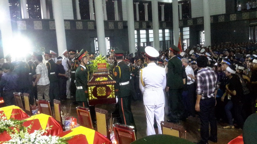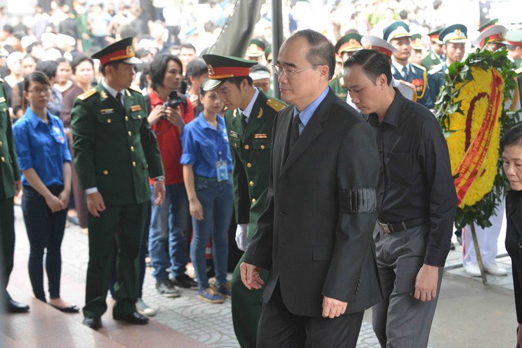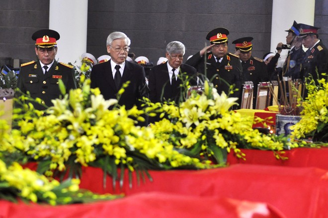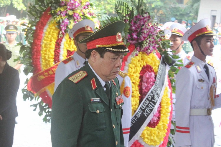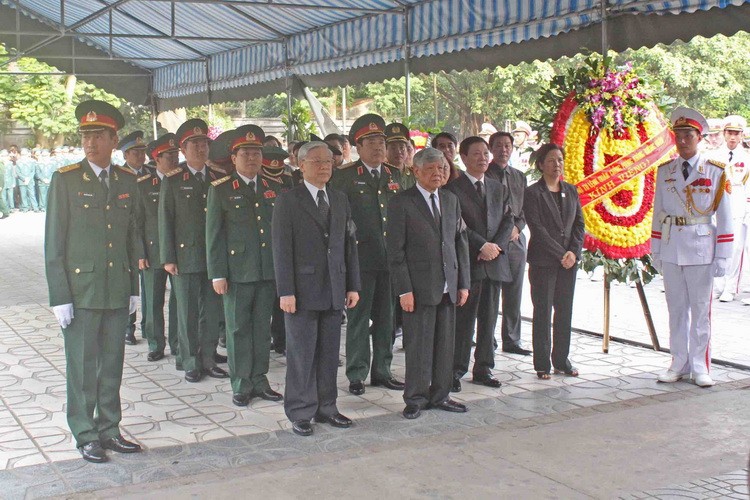 TTổng Bí thư Nguyễn Phú Trọng dẫn đầu Đoàn đại biểu Quân ủy Trung ương đên viếng. Thủ tướng Nguyễn Tấn Dũng và Phó thủ tướng Nguyễn Xuân Phúc cũng gởi vòng hoa tưởng niệm đại diện cho Chính phủ do Phó thủ tướng Hoàng Trung Hải vào viếng. Ảnh: VNE