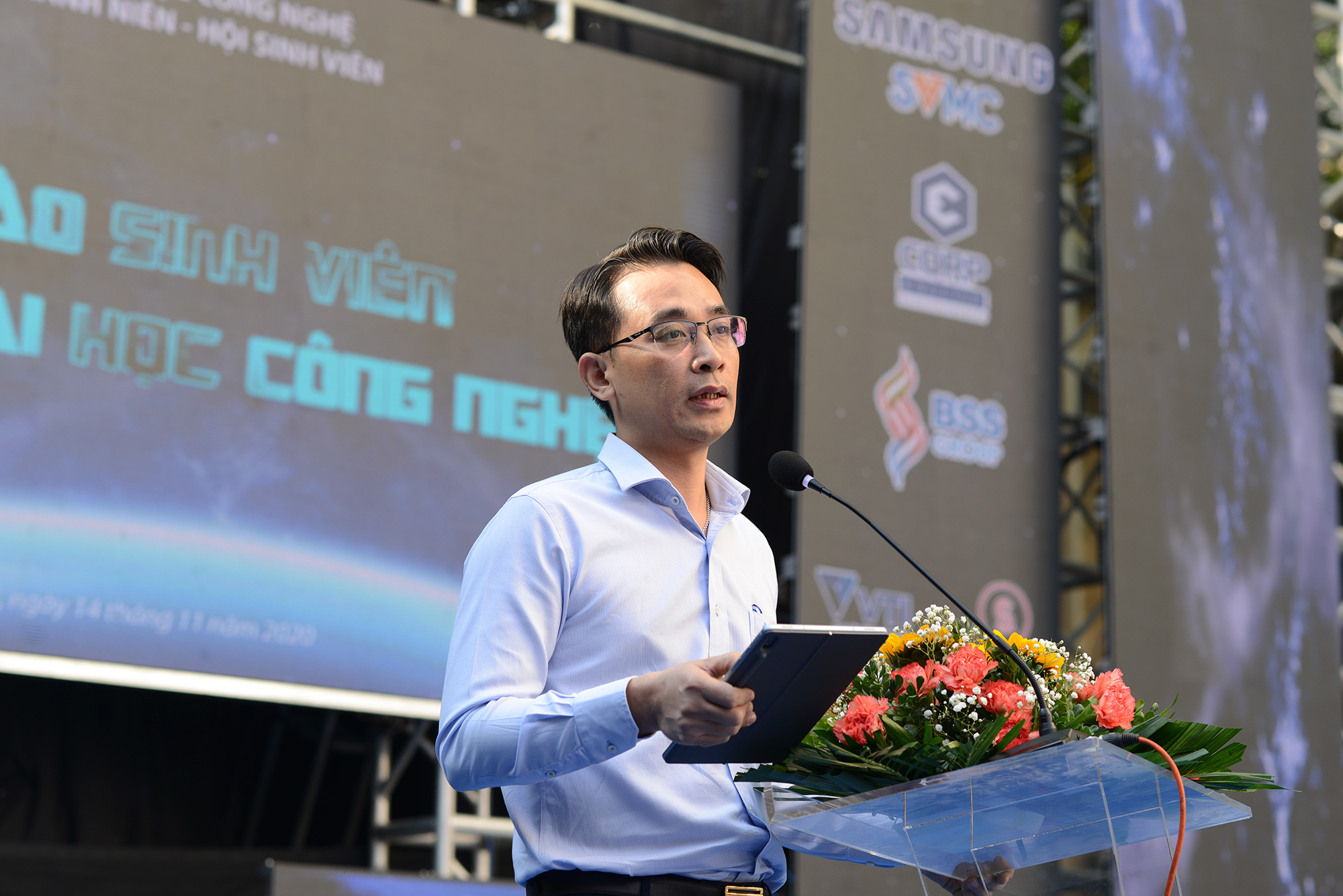 Phó Hiệu trưởng Chử Đức Trình đã phát động phong trào sinh viên nghiên cứu khoa học và hội trại truyền thống của Trường ĐHCN