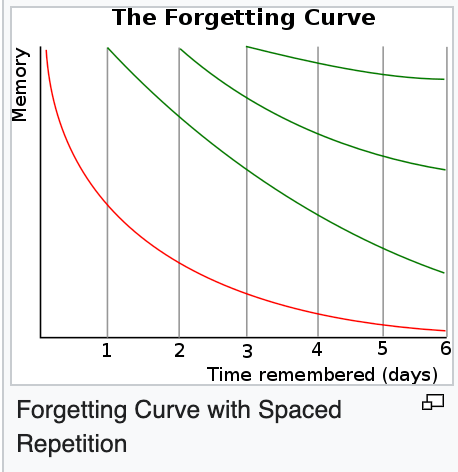 Bởi vậy, Spaced Repetition sử dụng chiến thuật lặp lại cách quãng, có nghĩa là ngay khi não bộ của mình bắt đầu quên điều gì đó, mình ôn lại ngay gối đầu và nhờ vậy nhớ được lâu hơn. Từ khoá quan trọng ở đây là “cách quãng”.
