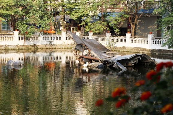 Xác chiếc B-52 dưới hồ Hữu Tiệp (phường Ngọc Hà, quận Ba Đình, TP Hà Nội).