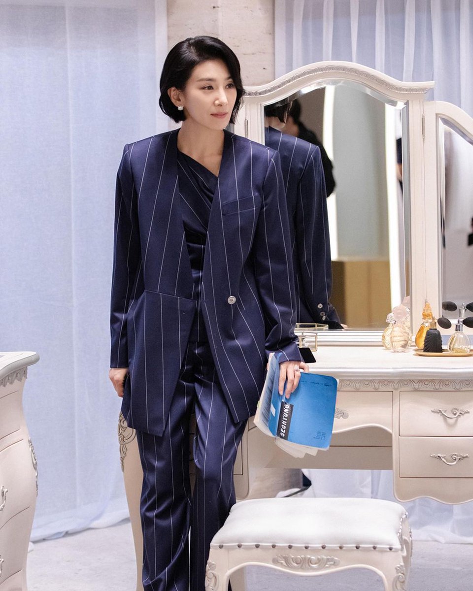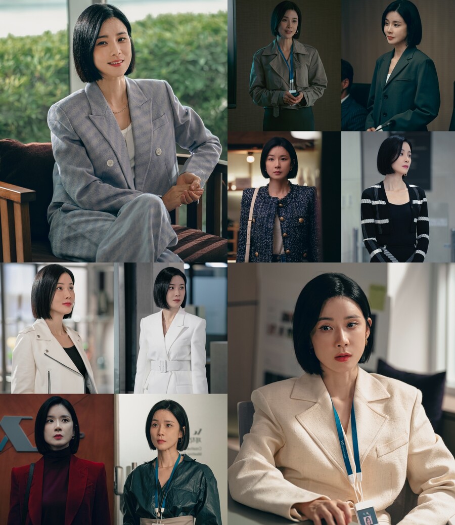 Qua từng tập phim, nữ diễn viên thường xuyên diện những bộ trang phục unisex ấn tượng và sang trọng, tạo nên hình ảnh một nhà lãnh đạo quyền lực. Kim Seo Hyung chủ yếu lựa chọn các tông màu trung tính như trắng, đen, be, và xám. Dù có vẻ đơn giản, nhưng những tông màu này lại góp phần tôn lên vẻ thanh lịch và thần thái cuốn hút cho người mặc.