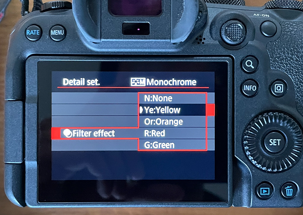 1) Trong máy ảnh Canon, hãy đặt cài đặt về chức năng Monochrome (Đơn sắc). Bây giờ, khi bạn truy cập vào cài đặt máy ảnh, bạn sẽ có thể thấy các tùy chọn Filter (Bộ lọc) và Tone (Tông màu). Từ đó, bạn có thể chọn bộ lọc mình muốn áp dụng trong lần chụp tiếp theo.