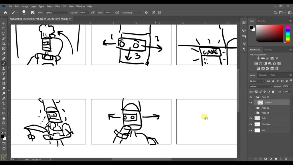 Đây là một công cụ vô cùng lý tưởng để tạo ra storyboards cho quảng cáo, video và phim . Với khả năng quản lý layer và các công cụ vẽ trên phần mềm Photoshop, các nhà thiết kế có thể dễ dàng phác thảo từng khung hình và sắp xếp chúng theo trình tự để truyền tải một câu chuyện rõ ràng và mạch lạc.