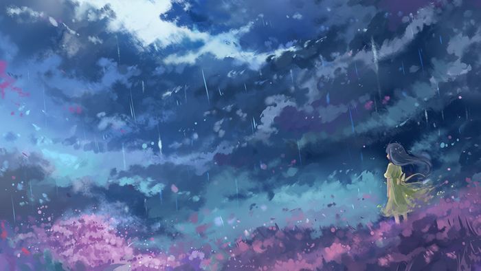 Bức tranh đẹp của anime cô gái quay lưng