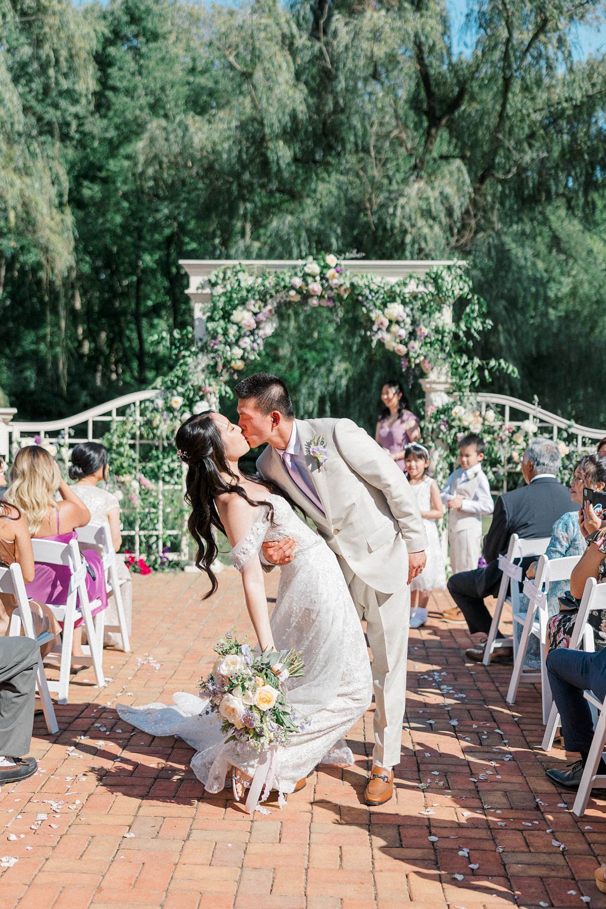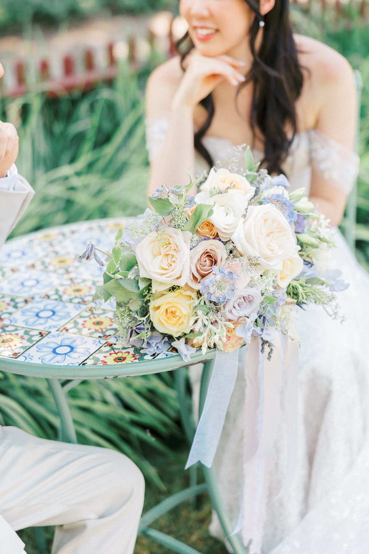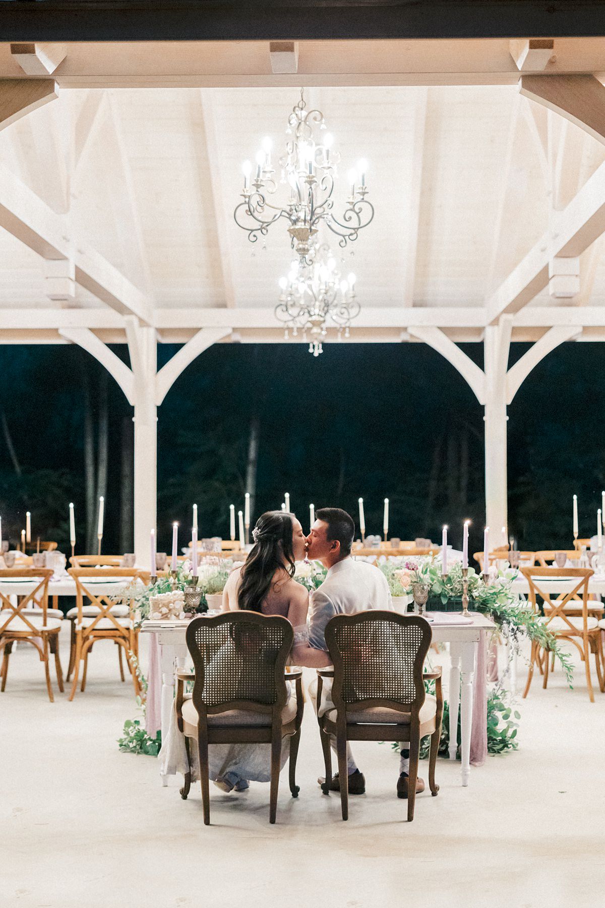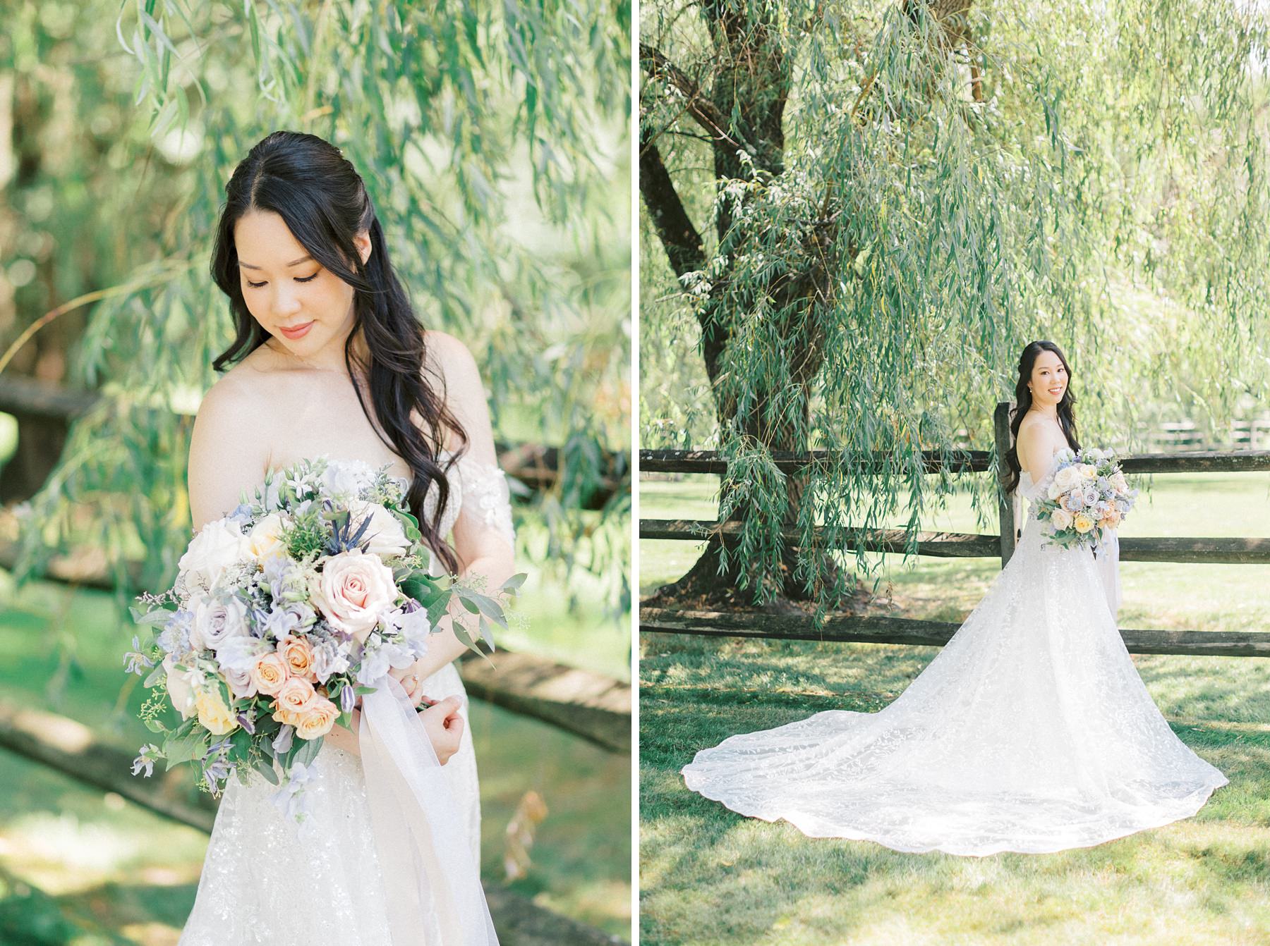 “Our vision for the wedding was inspired by European/French Provence lavender mixed with Bridgerton vibes (antique pieces and decor, lots of floral and leafy touches, lawn games, macarons) to enhance the beauty and magic of the lavender farm. We wanted to stay true to ourselves for our wedding and really make it our own. We knew we couldn’t have a wedding without some of our favorites things: sushi, bubble tea, abundance of desserts (cake, macarons, ice cream), and lots of photo ops throughout the property.”