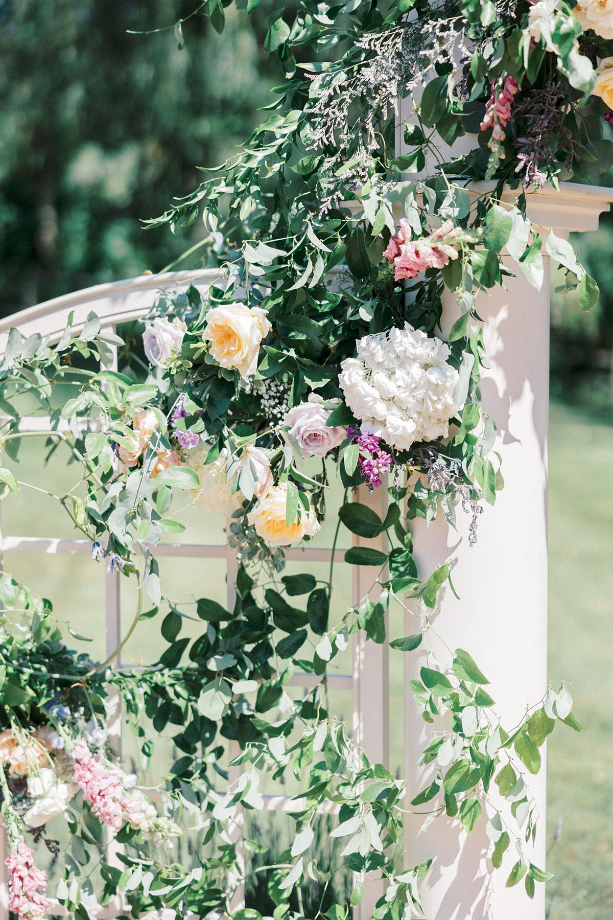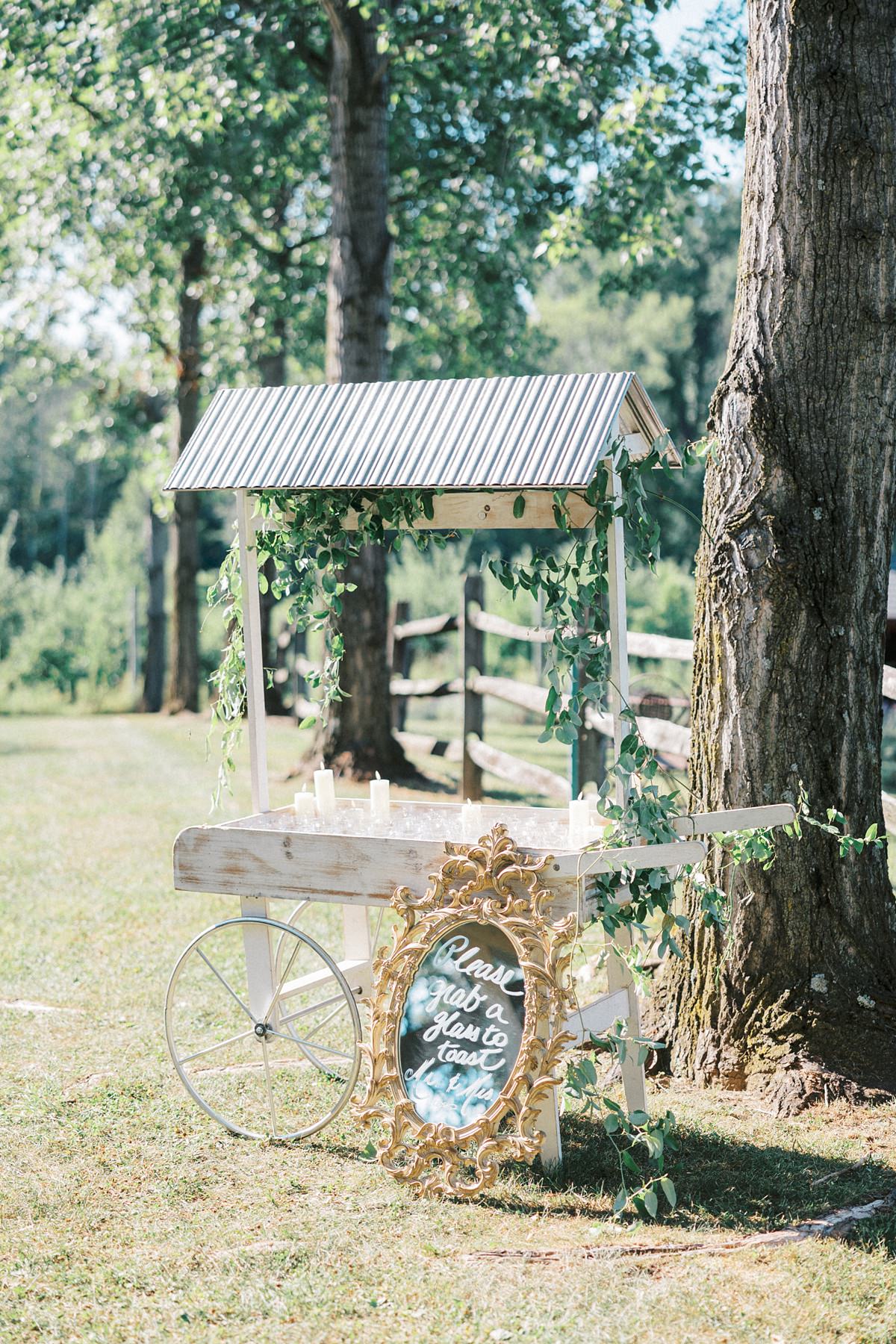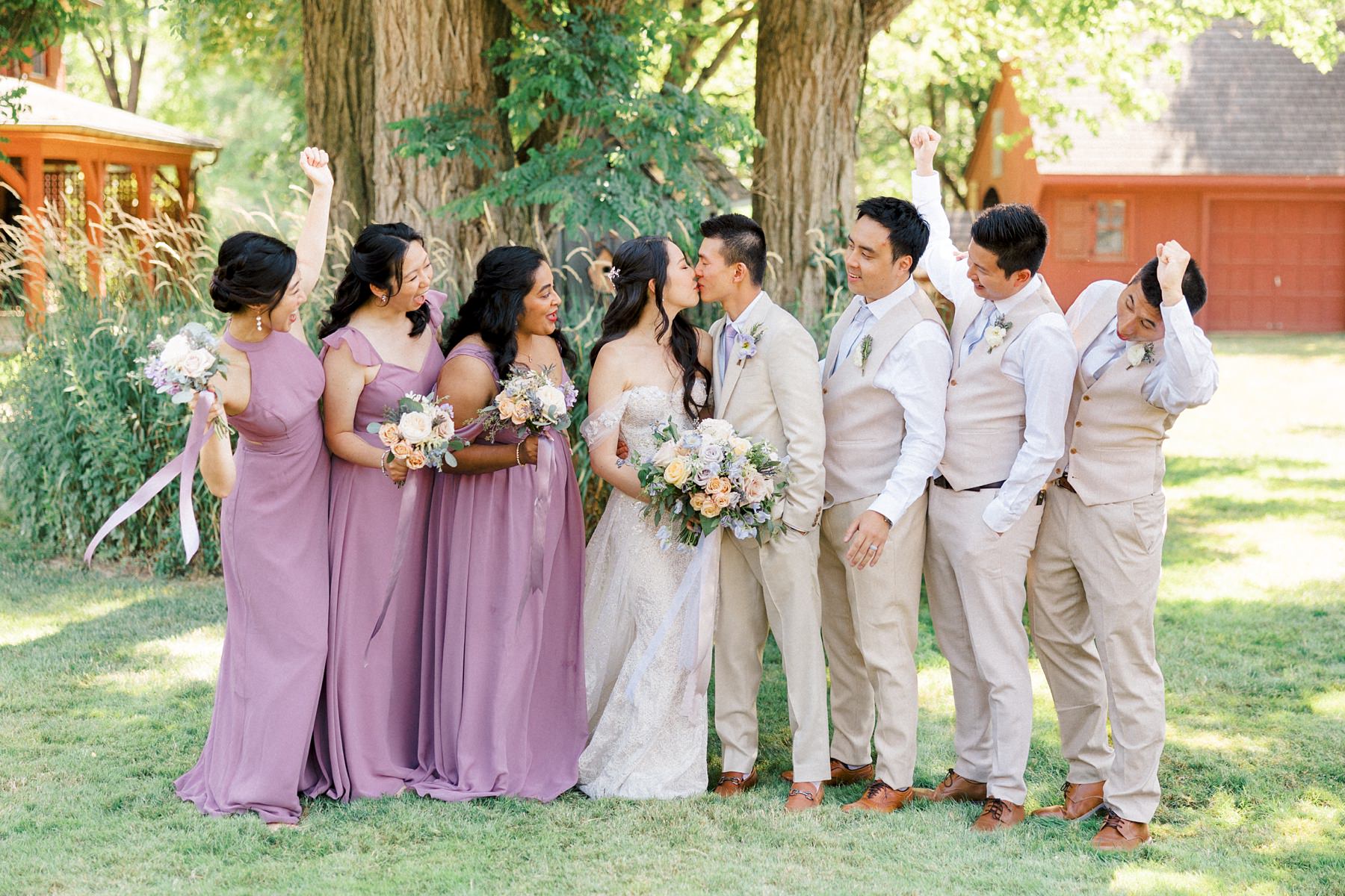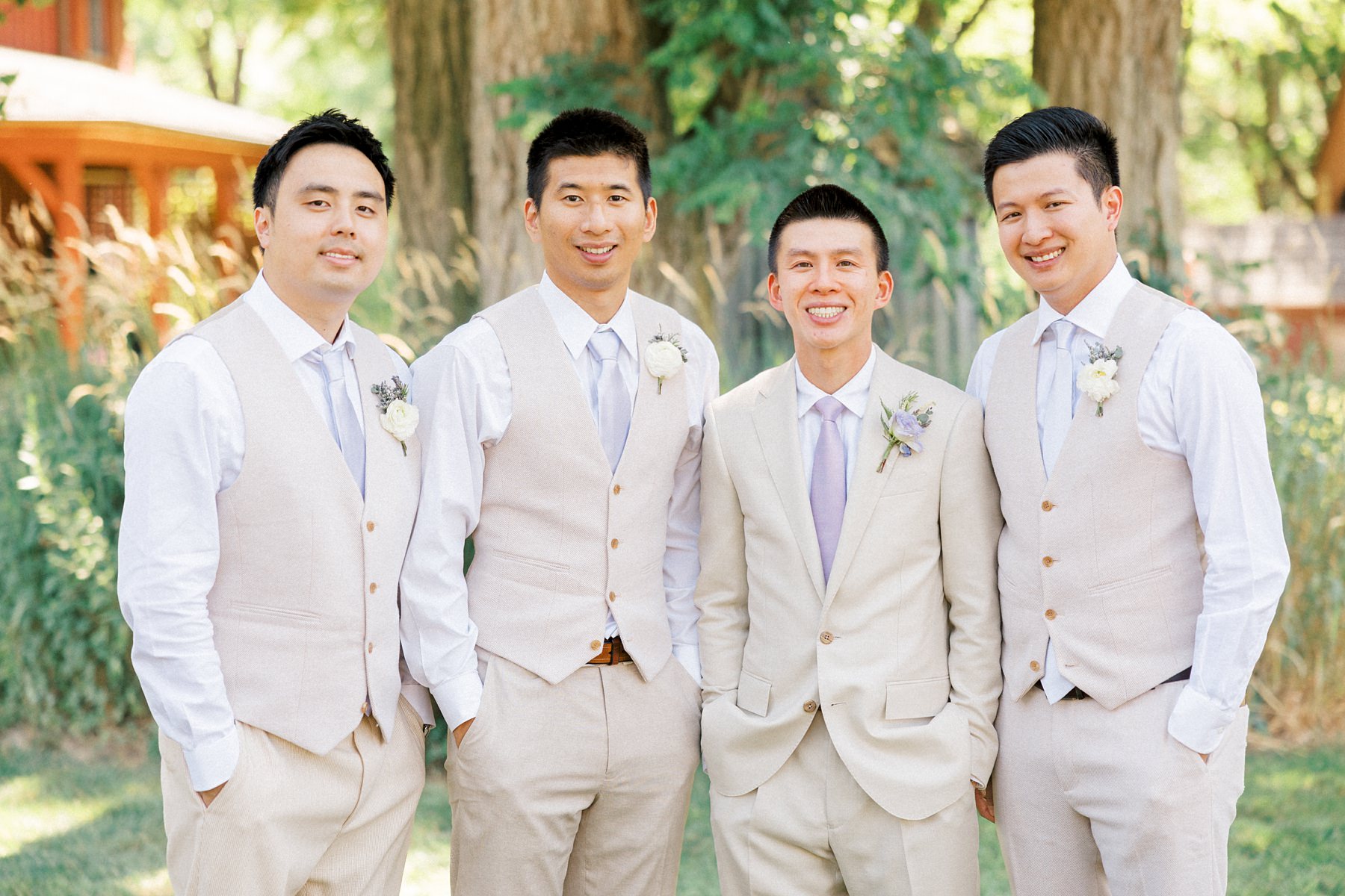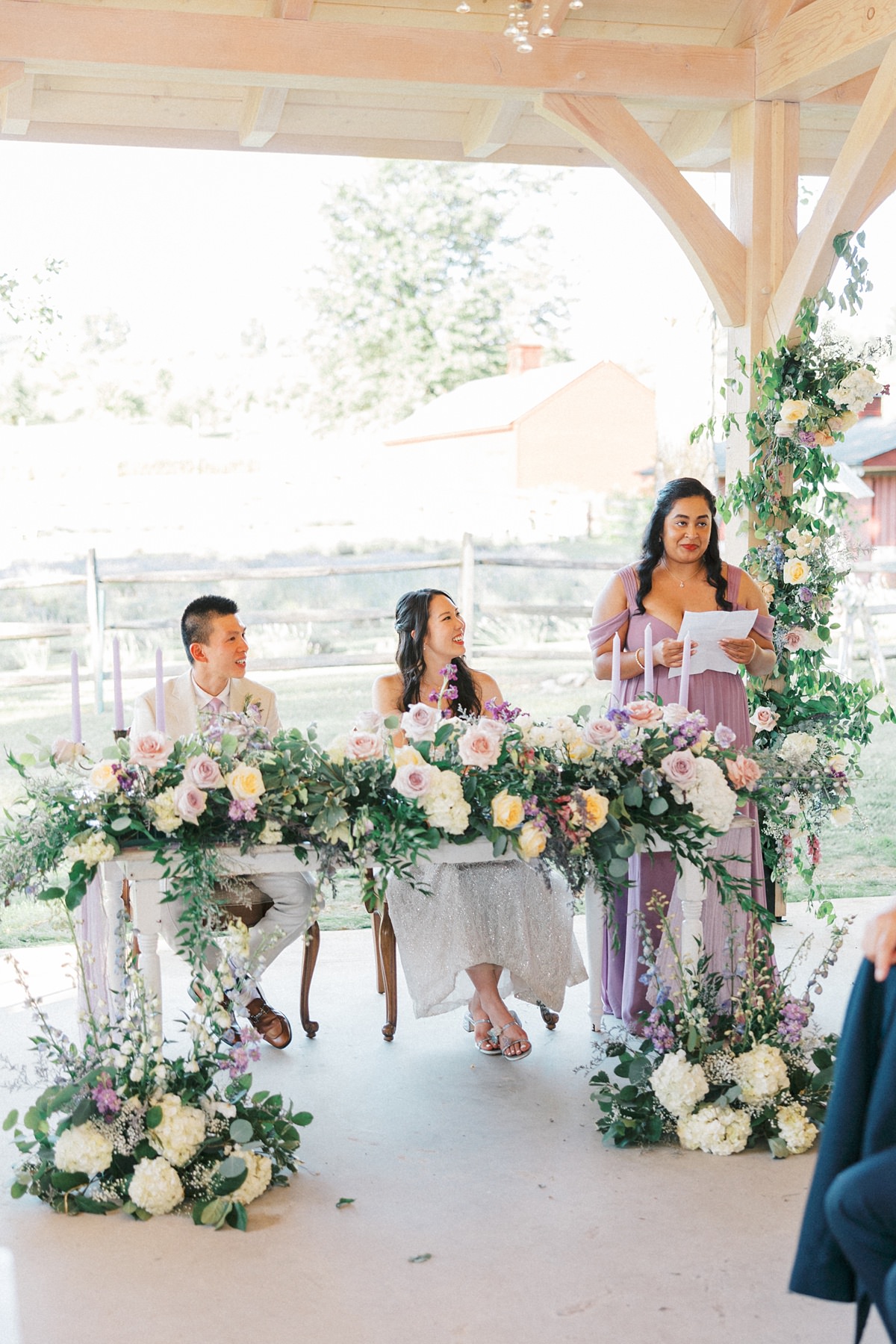 “Our vision for the wedding was inspired by European/French Provence lavender mixed with Bridgerton vibes (antique pieces and decor, lots of floral and leafy touches, lawn games, macarons) to enhance the beauty and magic of the lavender farm. We wanted to stay true to ourselves for our wedding and really make it our own. We knew we couldn’t have a wedding without some of our favorites things: sushi, bubble tea, abundance of desserts (cake, macarons, ice cream), and lots of photo ops throughout the property.”